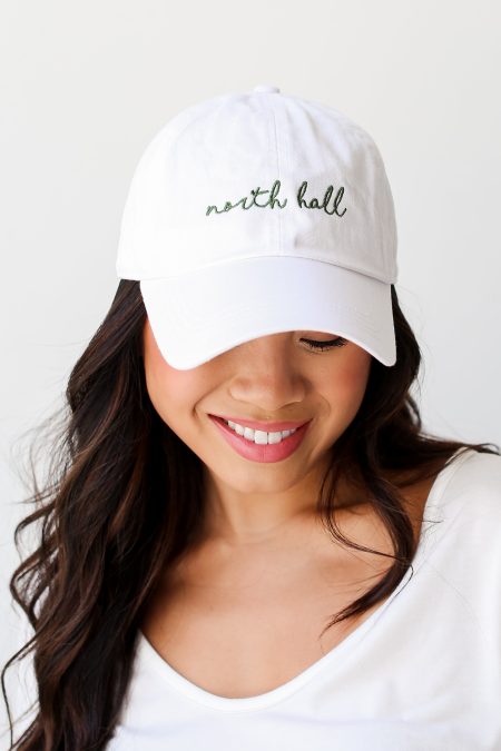 All DU Exclusive items are excluded from all coupons and promotionsCalling all Gainesville residents, the White North Hall Script Embroidered Hat was made just for you! This cute hat is made of a soft cotton construction. It has a rounded top and a slightly rounded brim with “North Hall” embroidered…